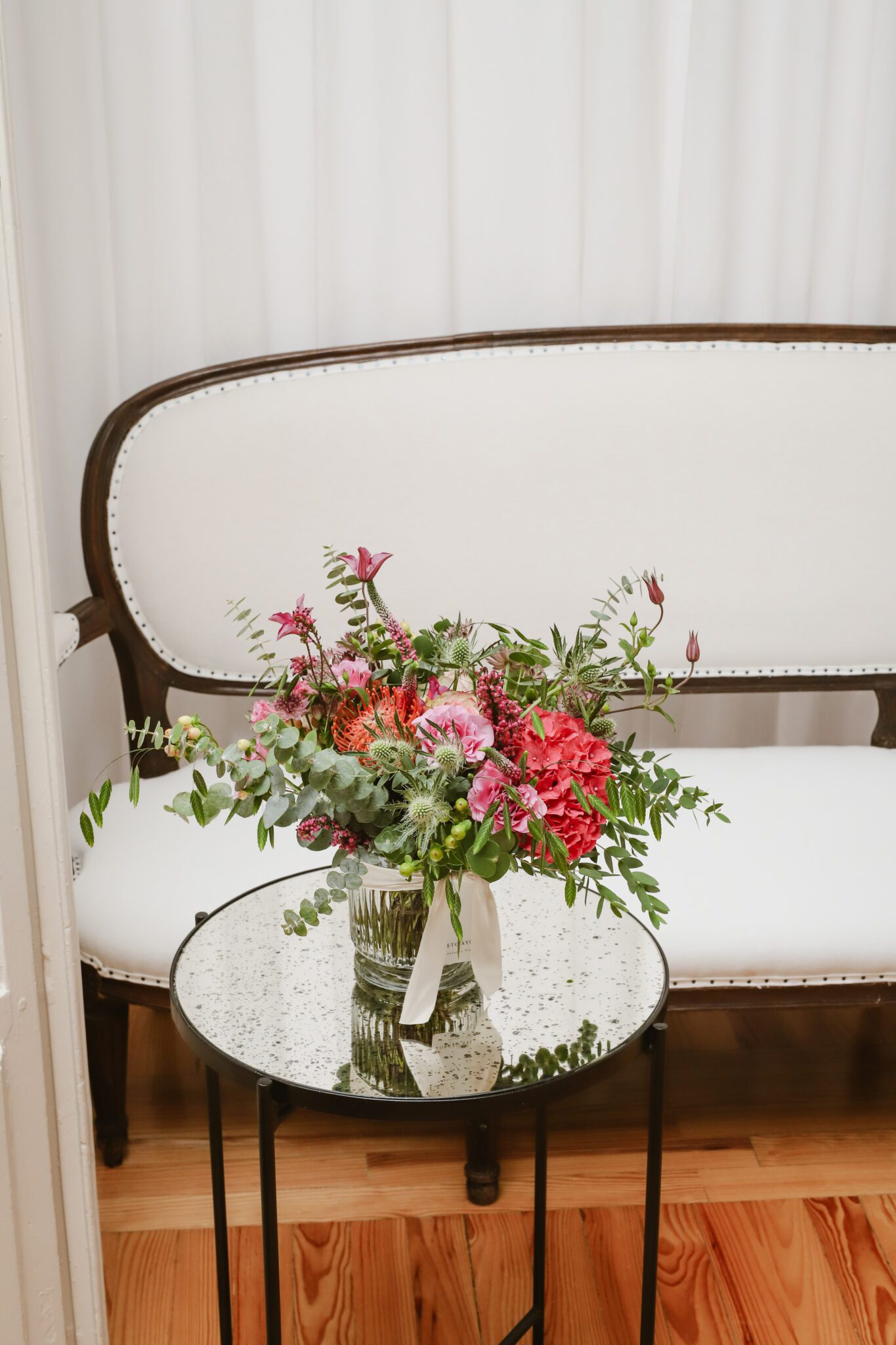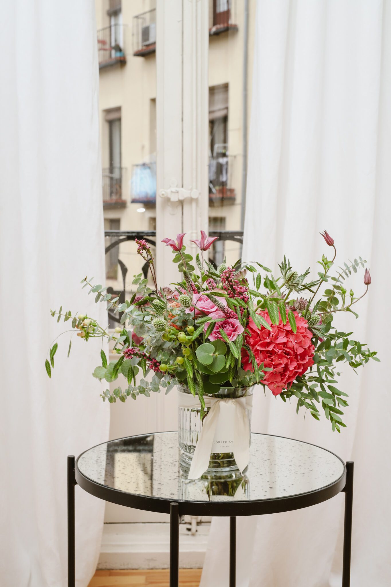 Puedes llamarnos al estudio o escribirnos si necesitas que te personalicemos tu pedido. Somos una floristería en Madrid especializada en arreglos de alta calidad y realizamos envío de flores en Madrid.