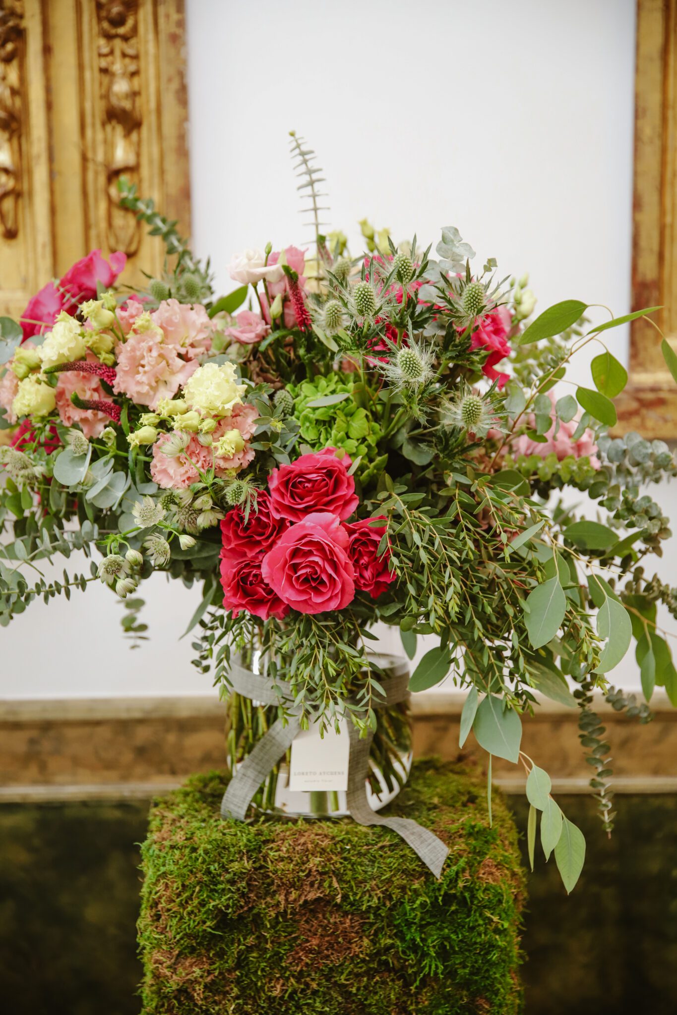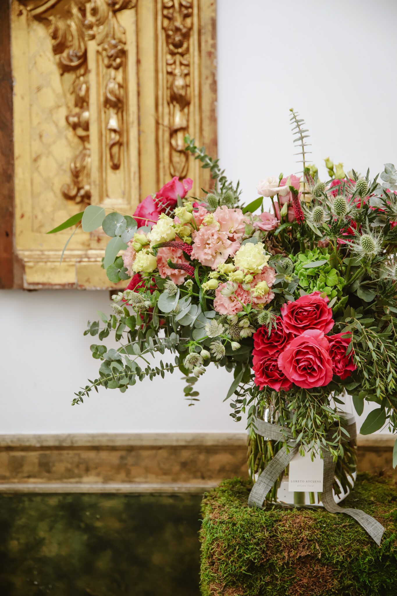 Arreglo floral otoñal. Este ramo está elaborado con variedades de eucalipto, hoja de roble natural, frutos y una selección de las mejores flores de temporada… una selección de diferentes verdes y texturas realizada por Loreto Aycuens de forma exclusiva para el estudio. Es el ramo perfecto para disfrutar en casa del color y olor del otoño.
