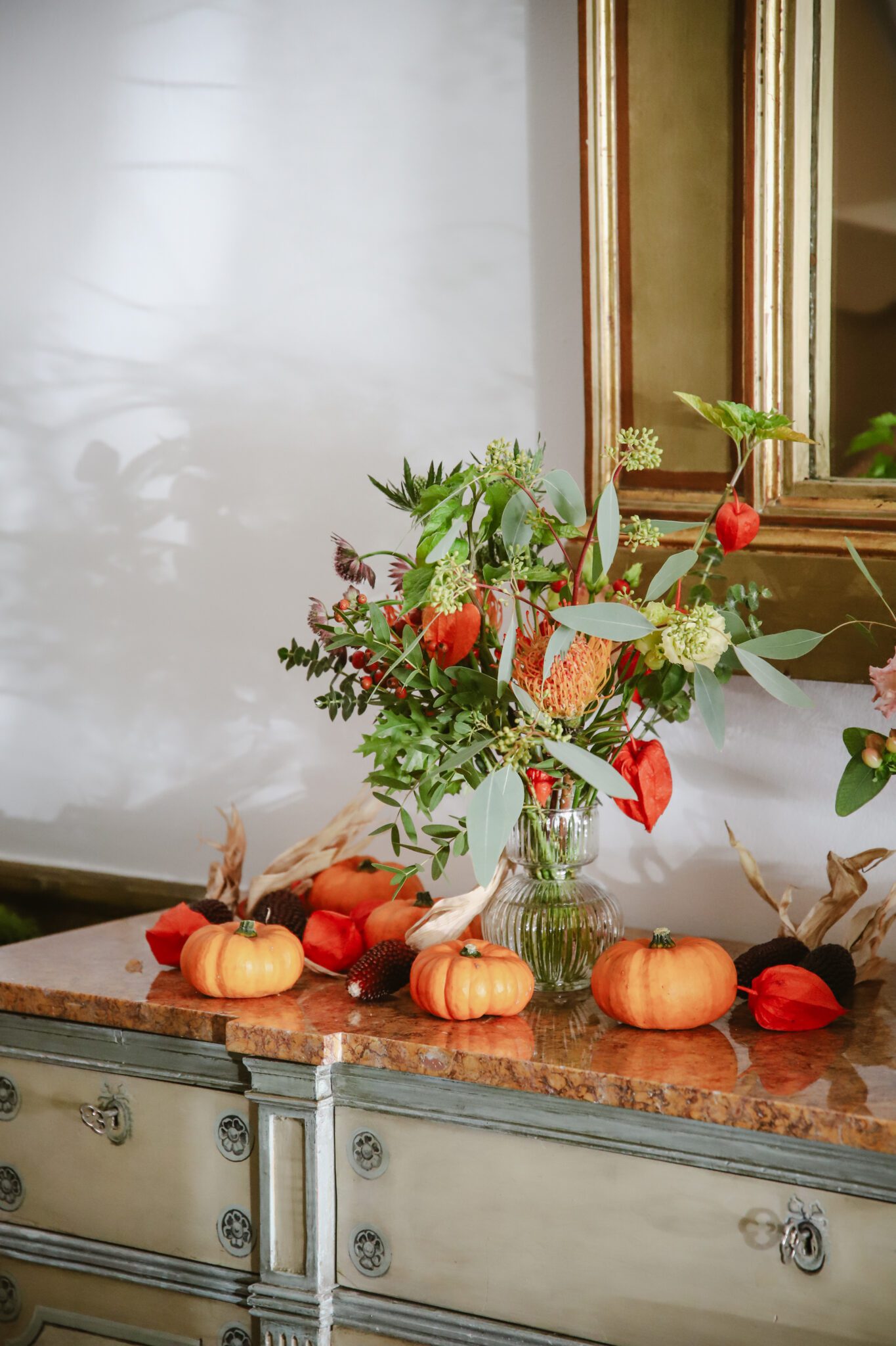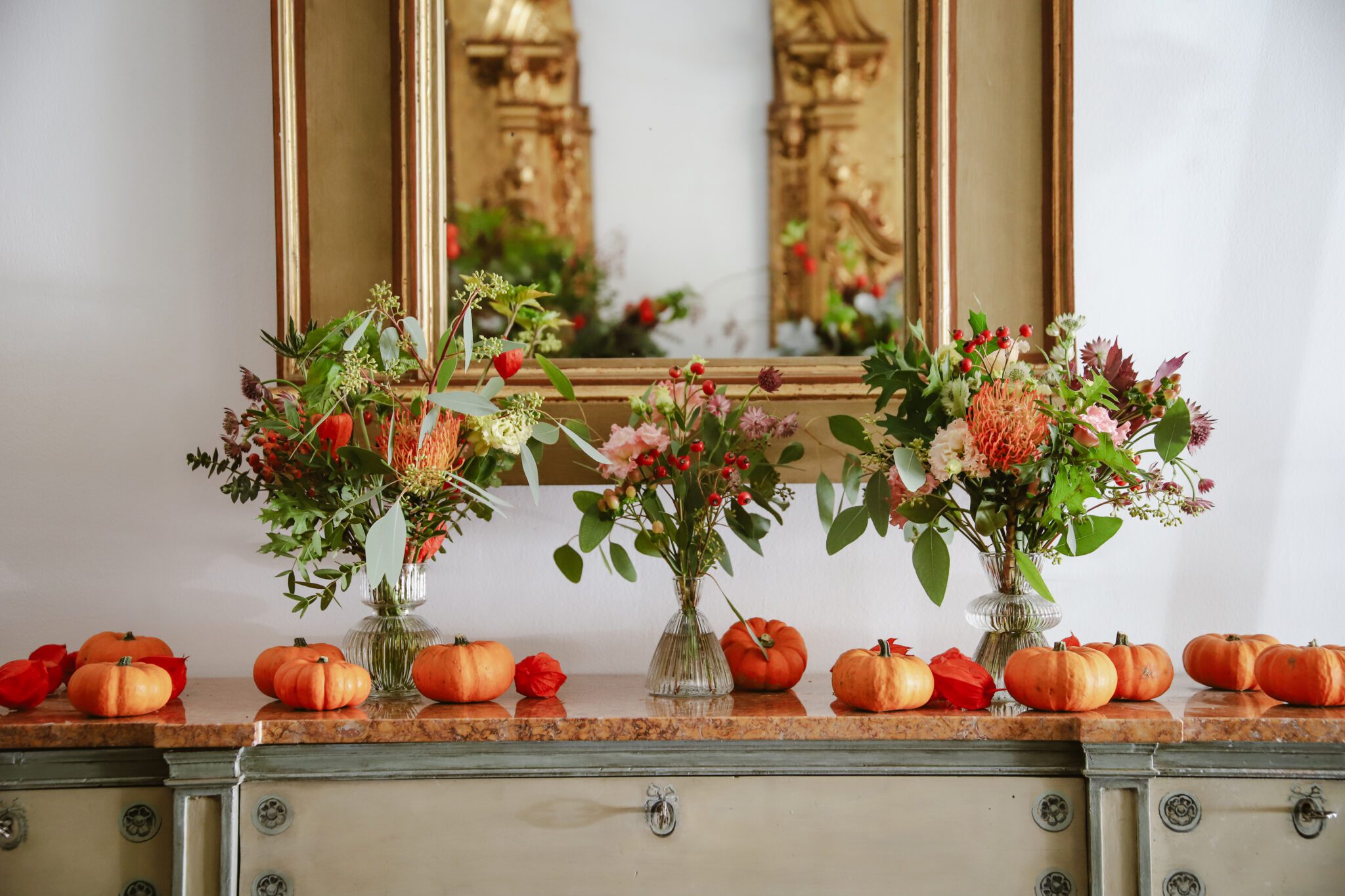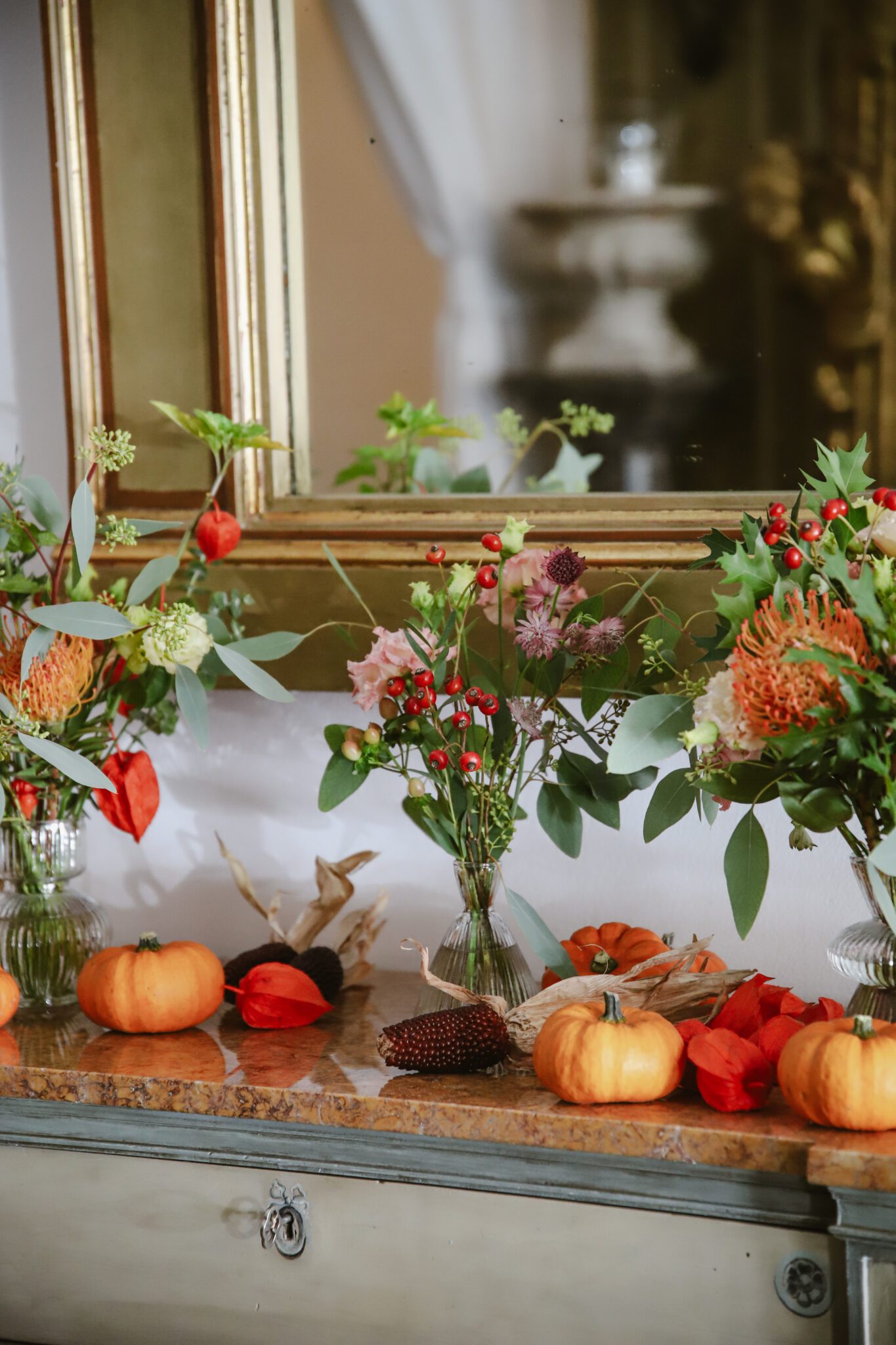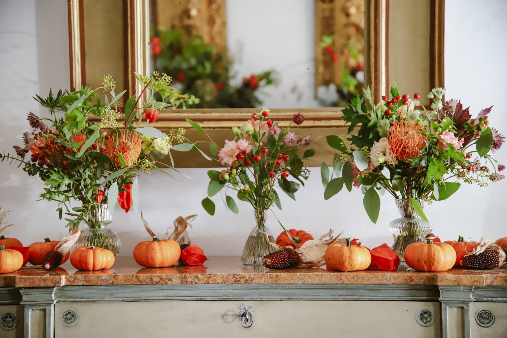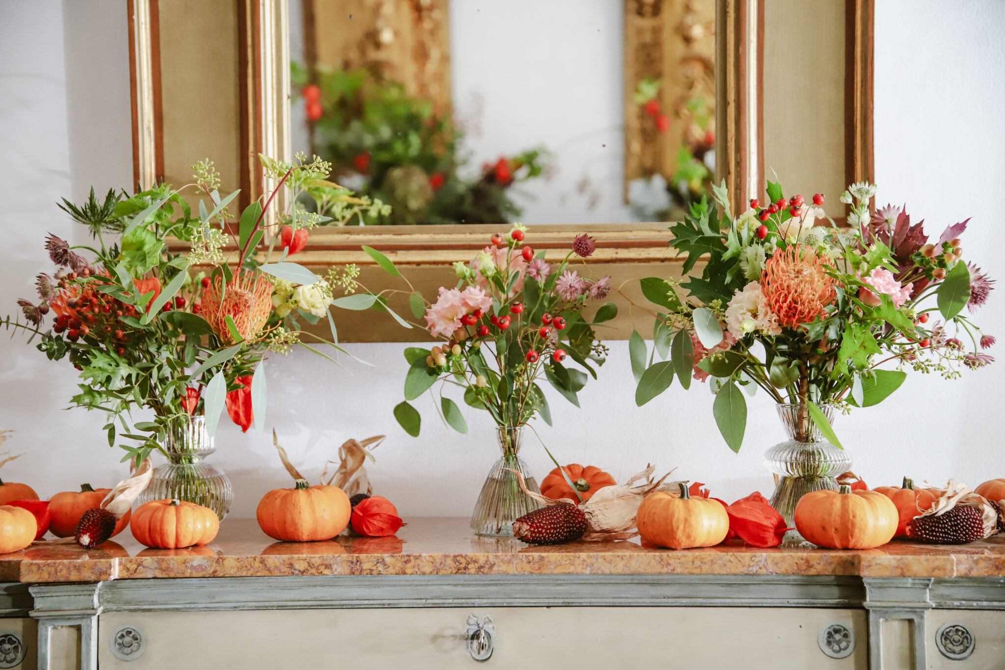 Botellita de cristal con flores de temporada. Disponible en tres modelos de botellitas. El precio es unitario.